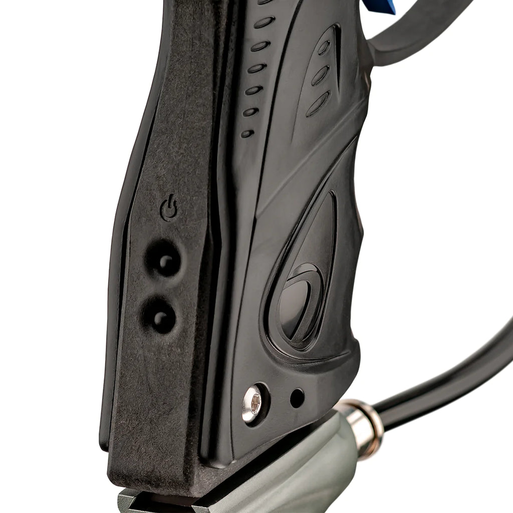 The Composite 45 frame draws from the same influences and progressive engineering as the innovative UL Frame, but uses an extremely durable nylon/fiberglass composite for unparalleled toughness. The hourglass shape was ergonomically designed to give the player complete control of the marker. It also allows players to quickly and effortlessly pull the trigger. An integrated heads up display LED light alerts you to the status of your marker without taking your eyes off the game.