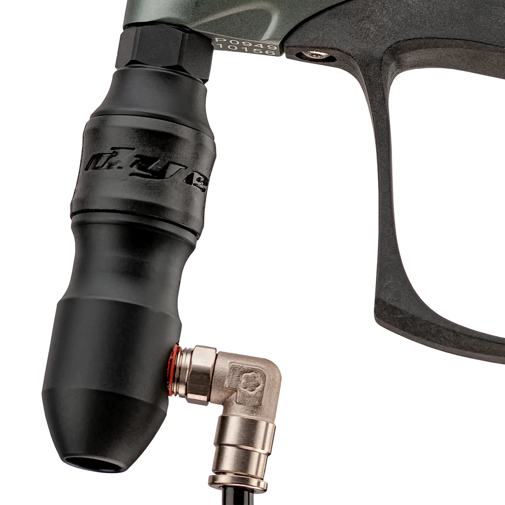 Introduced in 2010 the UL airport has dramatic curves and an aggressive look. It is designed to be small and light as possible. The UL airport is a balanced cam lever system with an easy turn on/off toggle. When the knob is in the locked on position, air is delivered to the marker through the linear front port for maximum comfort and a streamlined design.