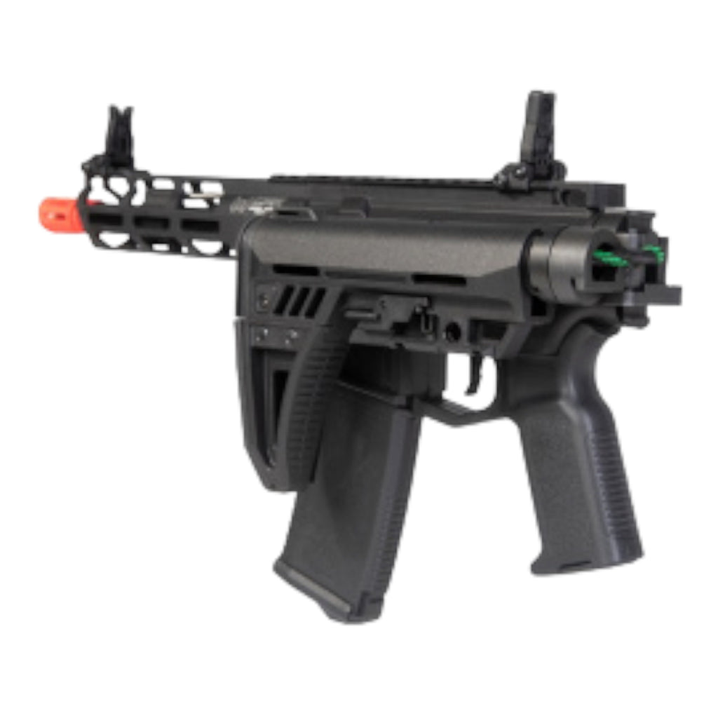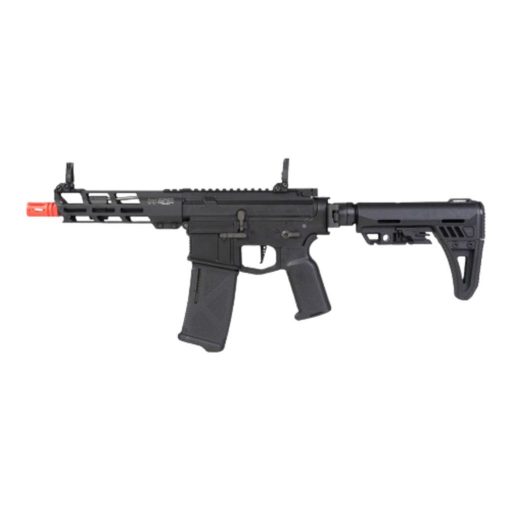 Externally, the gun is made of robust aluminum alloys and polymers, with a 14mm CCW threaded outer barrel for the attachment of different muzzle devices such as a tracer unit or a mock suppressor. The handguard is of a slim design with M-Lok and Picatinny slots for all your accessory needs, not to mention the end plate on the receiver has Picatinny rails too for different stock attachments. The original stock that comes with the gun is also modular, first of all being a folding stock design, this gun unlike most M4 / AR15 style electric airsoft rifles, could still operate when the stock is folded thanks to a robust power cable, this allows for the rifle to be more compact for storage or even engagements in CQB scenarios. The stock is also customizable with 3 different attachments, allowing for users to decide which configuration suits them the most.