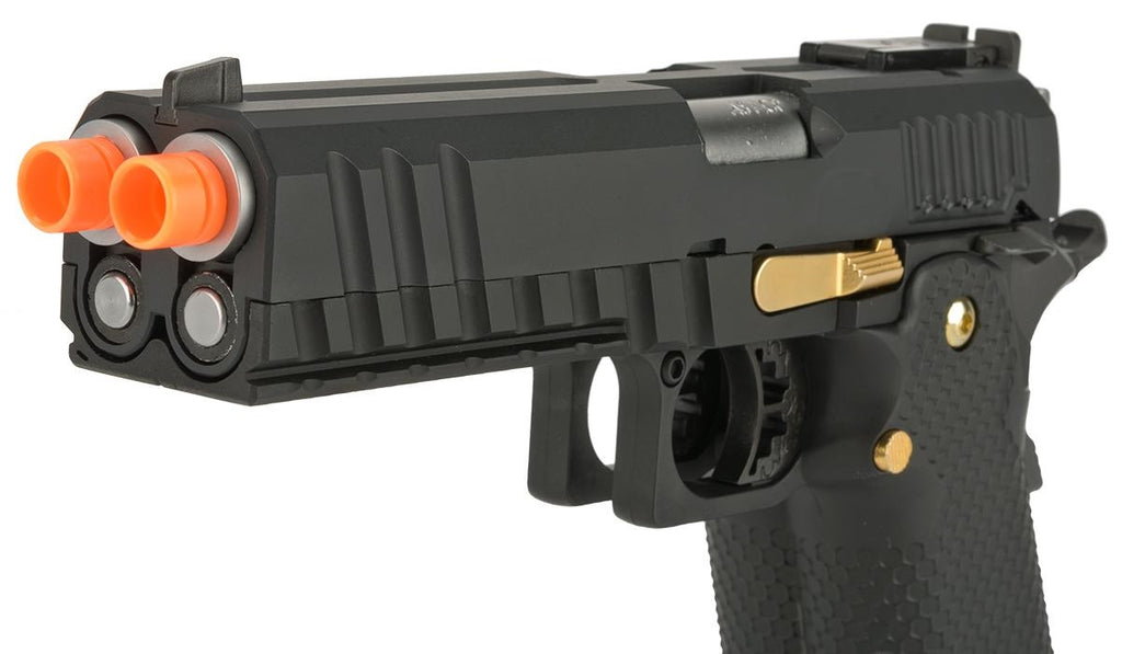 AW Custom Double Barrel Hi-Capa 1911 Gas Blowback Airsoft Pistol Black