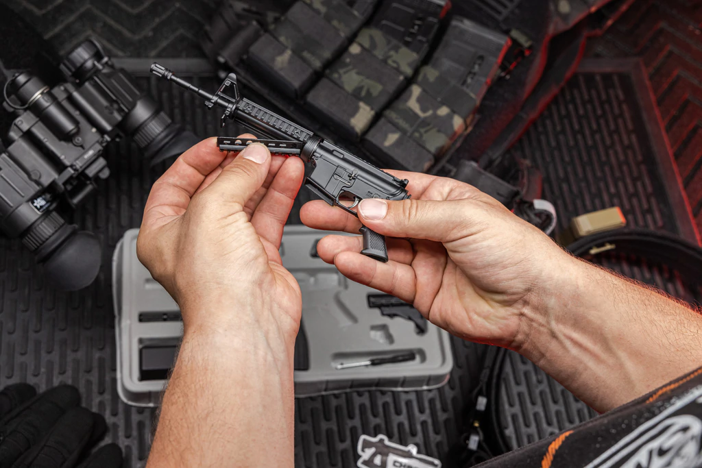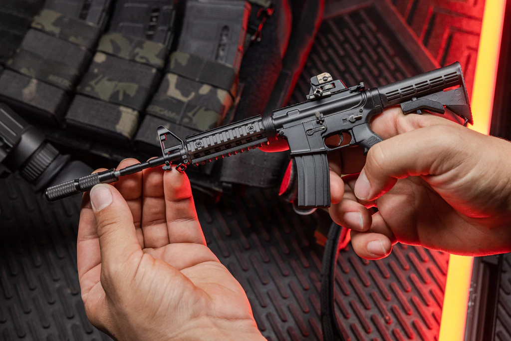 All Metal parts on our 1:3 scale toy AR15 model. Users can modify into other variants our attachments. Build up, break down and then display proudly to friends and family.