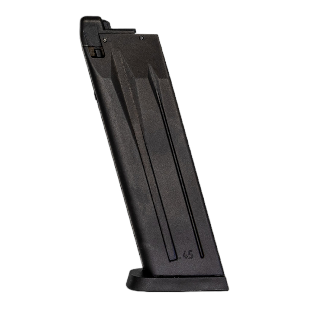 This is the standard capacity replacement magazine for the HK USP GBB airsoft pistol. This magazine holds 25 airsoft BBs and a full charge of green gas.